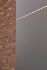 Das modernisierte und umgebaute Gebäude aus den 1930er Jahren zeigt sich zum Garten hin unerwartet streng mit seinem vorgeschobenen Küchenbau. Glatte Flächen mit feinen Details kontrastieren zur alt belassenen Ziegelfassade. Das Wohnhaus lässt es so zu, seine Geschichte zu erkennen.